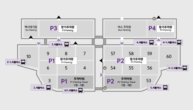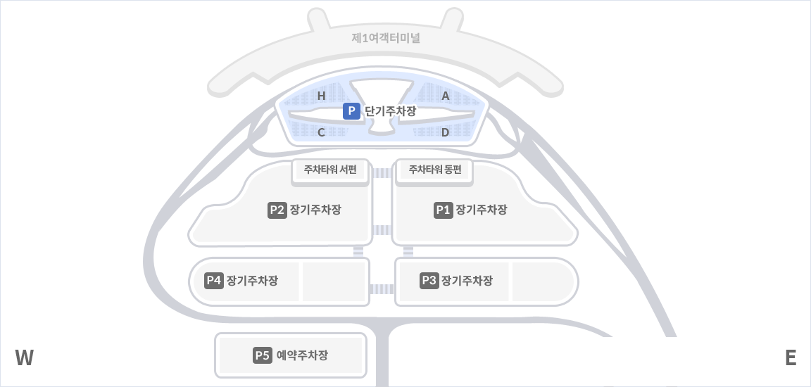 장기주차장은 1일 이상 주차하는 경우에 경제적인 선택입니다. 제1여객터미널 주차타워도 이에 포함됩니다: