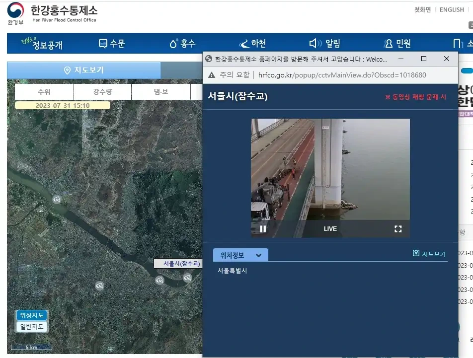 - 지도 위에 나타난 CCTV 아이콘을 클릭하면 실시간 영상을 확인할 수 있습니다.