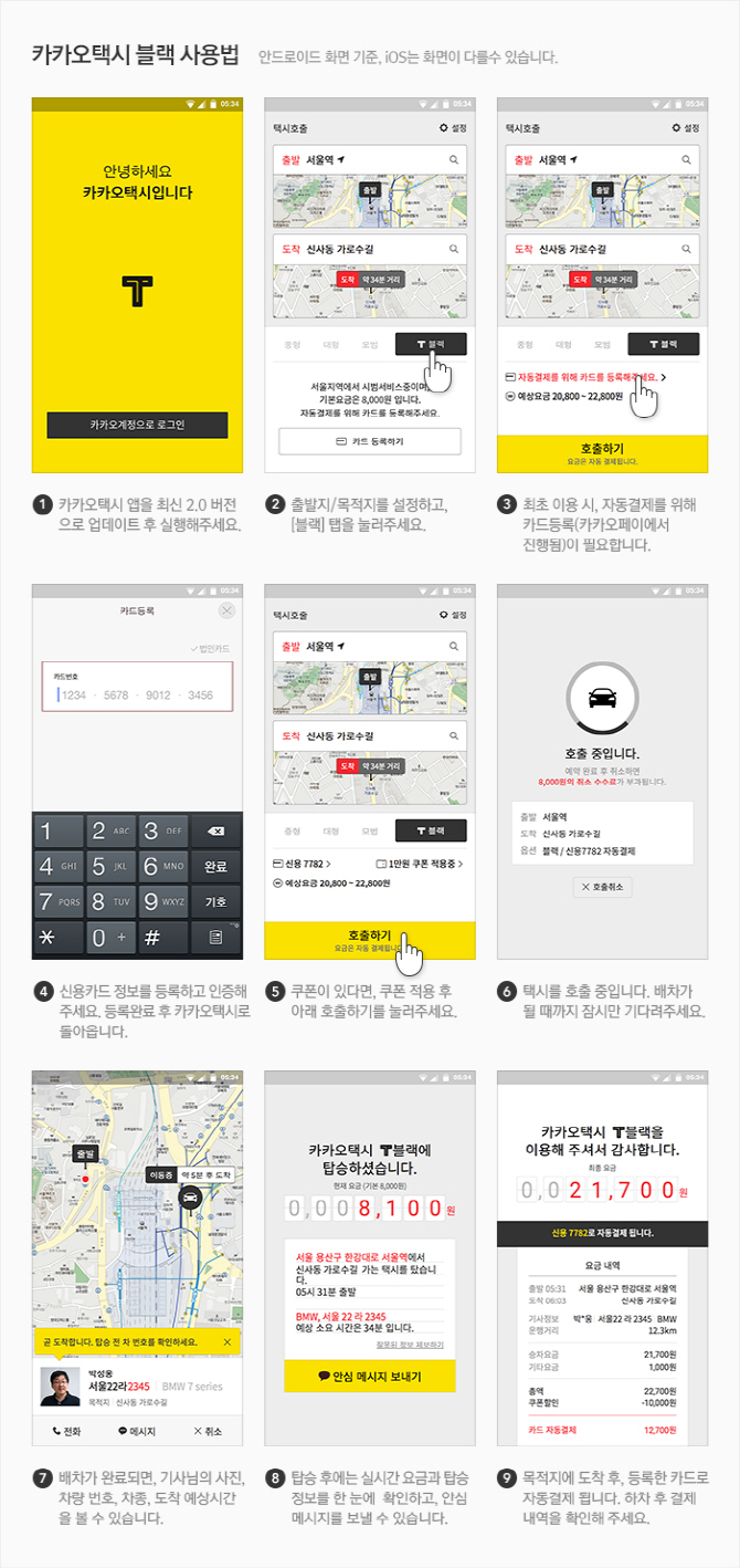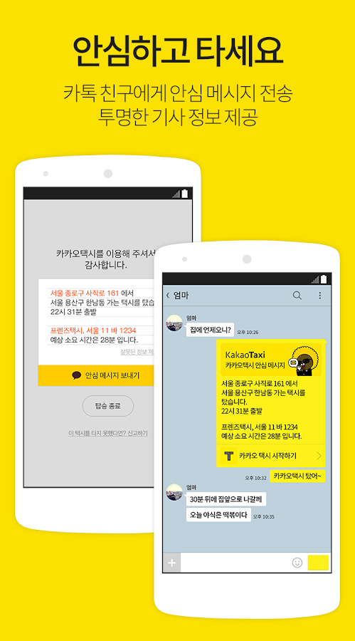 • 안전 기능: 탑승 정보 공유, 안심 귀가 등 승객의 안전을 위한 다양한 기능을 제공합니다.