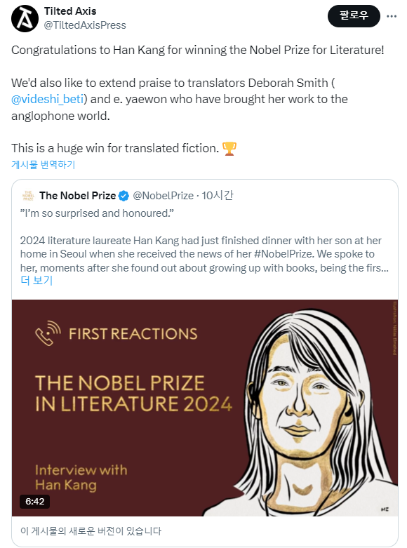 한강 작가의 노벨문학상 수상과 그 의미