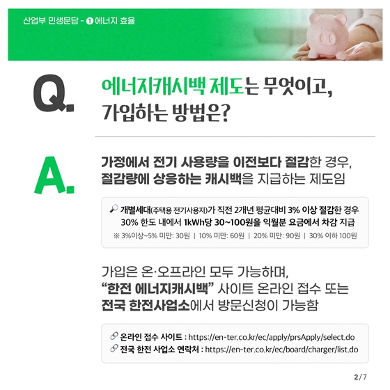 A: 캐시백은 다음 달 전기요금에서 차감되거나, 원하시면 현금으로 환급받을 수 있습니다.