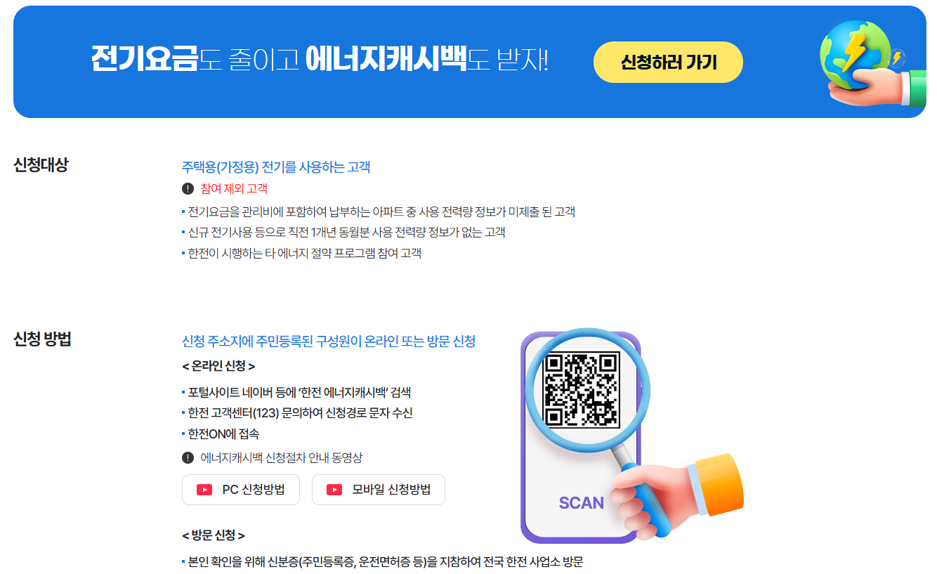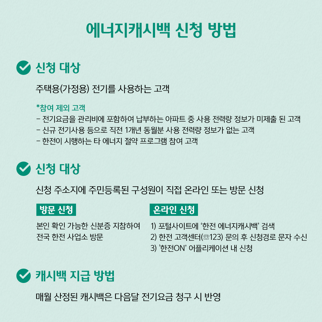 4. 한전 에너지캐시백 신청 자격 및 대상