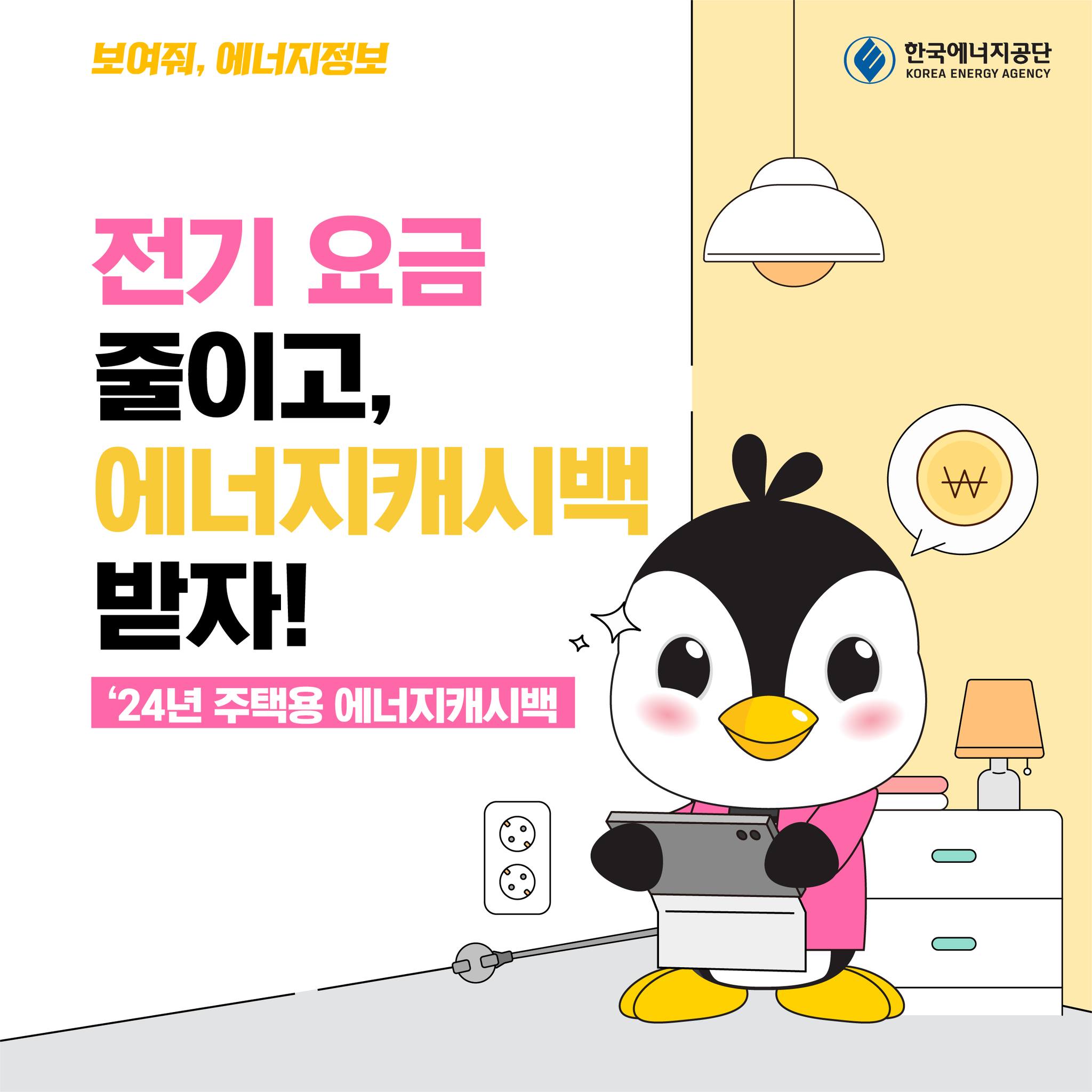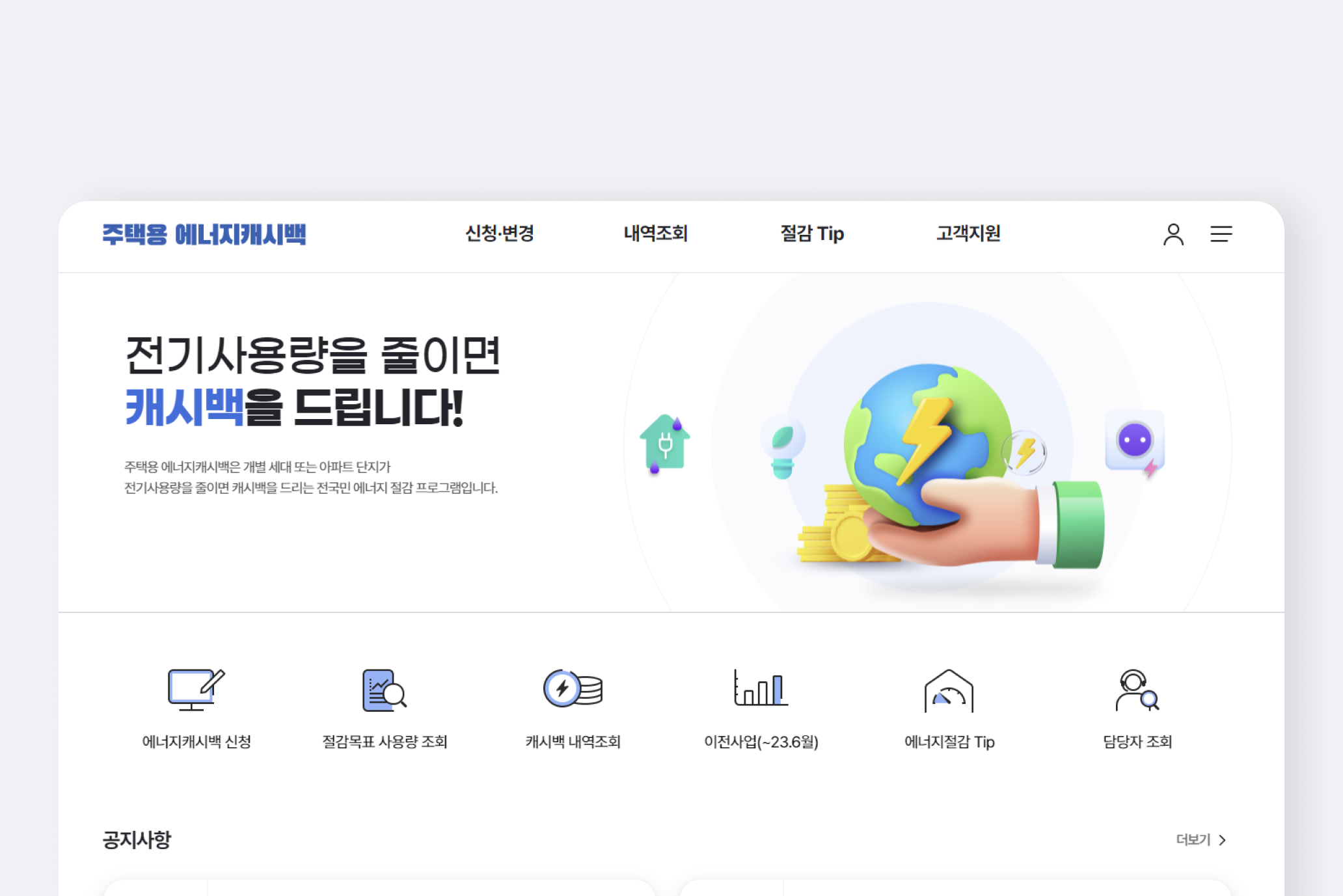 - '고객 서비스' 또는 '에너지 절감 프로그램' 탭에서 '에너지캐시백 신청' 선택