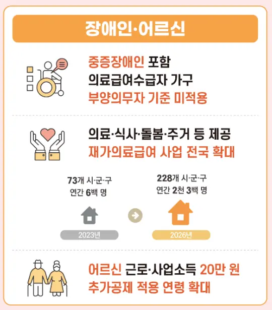 - 의료급여: 의료기관 이용 시 본인부담금 대폭 감소
