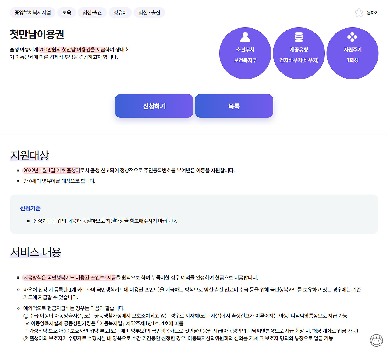 첫만남 이용권이란? 2024년 달라진 점