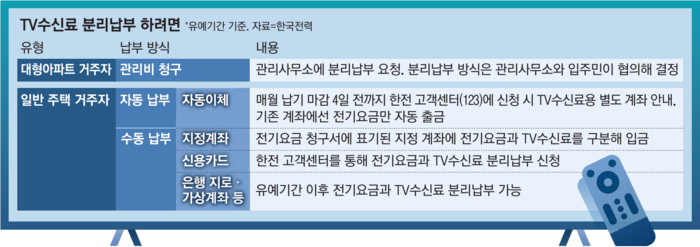 - 납부 시작: TV 구입 및 설치 다음 달부터