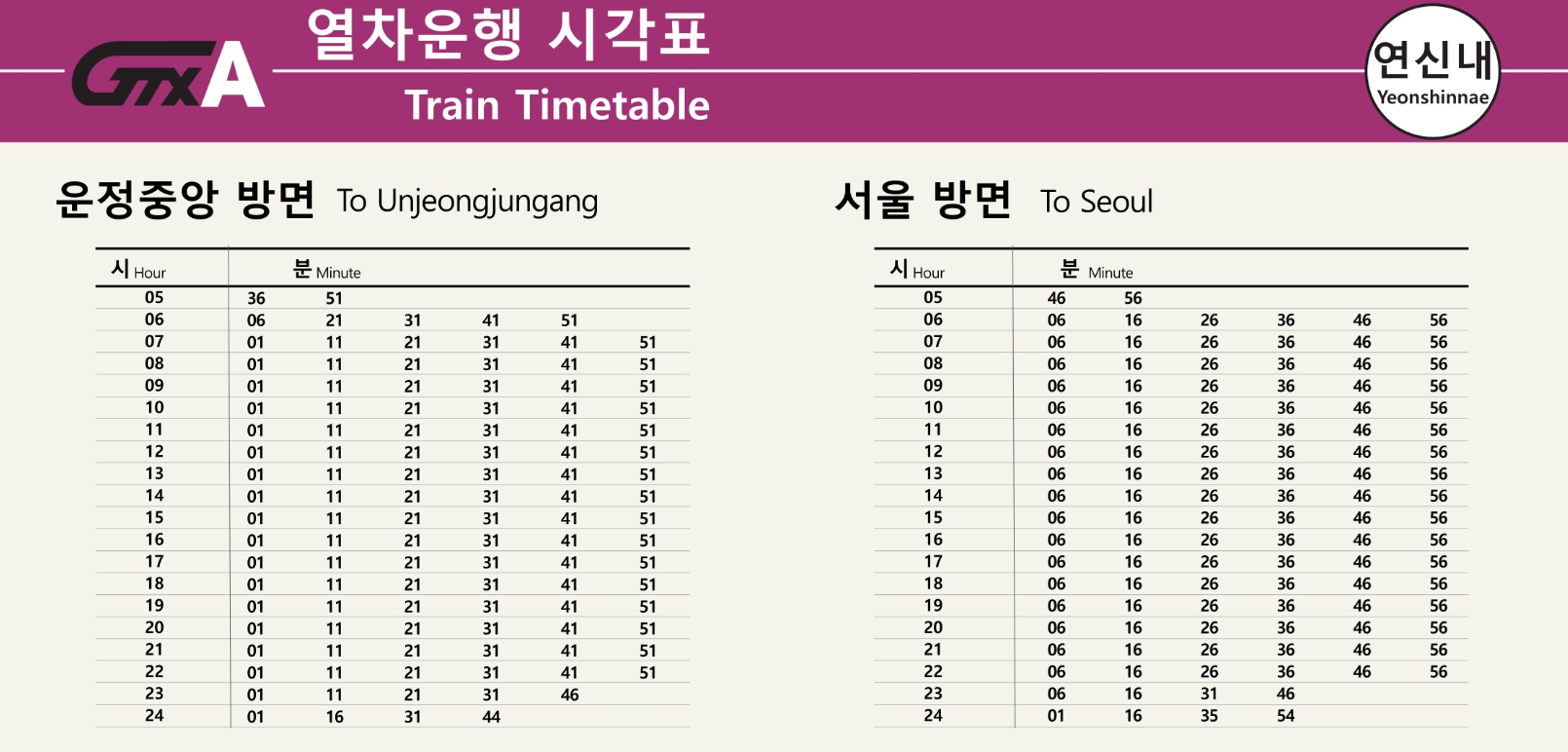 3. GTX A 노선 시간표 및 배차 간격 (2025년 기준)