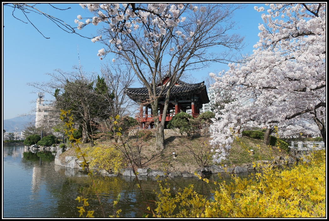 연화지의 매력적인 봄 풍경